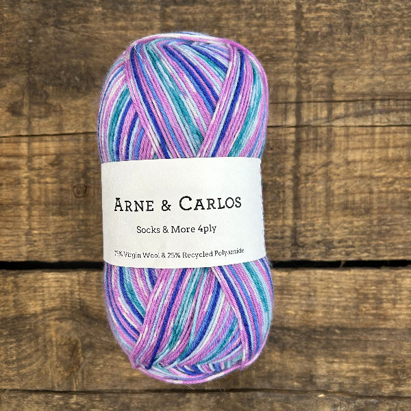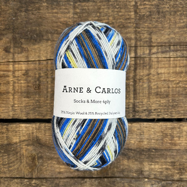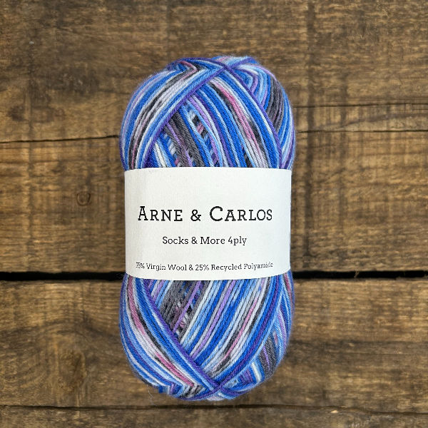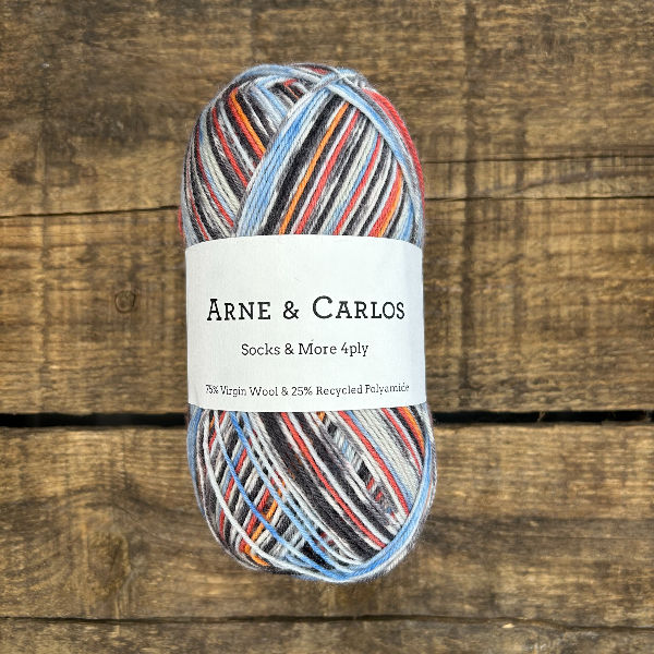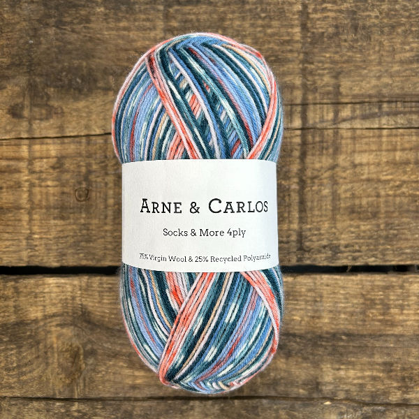 Arne & Carlos ont développé une collection de fils à chaussettes qui reprend leurs motifs et designs iconiques, et les transpose dans un magnifique fil composé de 75 % de laine vierge et 25 % de nylon recyclé. Les couleurs et effets de la collection se distinguent par d’ingénieux dégradés et motifs qui créent automatiquement un design intéressant au tricot, sans aucun changement de couleur ni technique compliquée. Donne une chaussette plus fine mais très chaude. Un patron de chaussettes à la vanille est idéal pour mettre en valeur cette magnifique laine.
