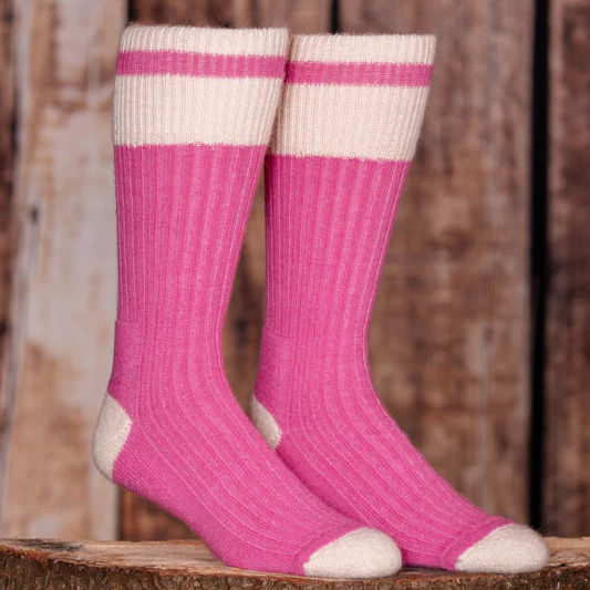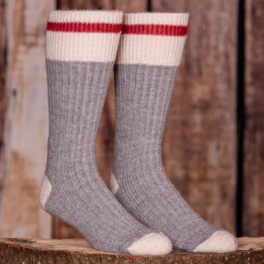 Les bas en alpaga Tradition sont fabriqués avec une méthode de fabrication appelée "construction Terry sous le pied", qui rend la section semelle intérieure bouclée. Cela les rend idéaux pour les activités extérieures telles que la motoneige, la randonnée pédestre, la raquette, la chasse, la pêche sur la glace, les sports de glisse et même pour pelleter la neige! Les propriétés naturelles de la fibre d'alpaga garderont vos pieds bien au sec et au chaud.