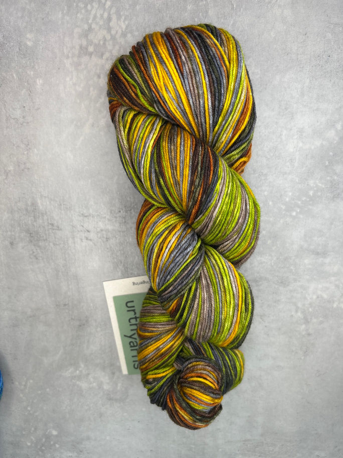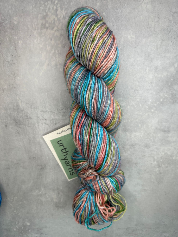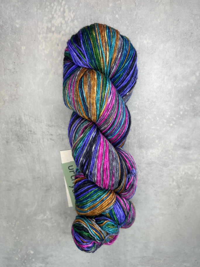 Comme tout ce qui existe dans la nature, le processus de teinture peut aboutir à des résultats qui nous surprennent de belle manière ! Chaque écheveau présente une couleur unique et accrocheuse. Les 4 couleurs dont est formé l'écheveau changent subtilement en dégradé par la magie de l'auto rayage Uneek. Ce fil est un plaisir à travailler, ne serait-ce que pour voir où les couleurs mènent.
